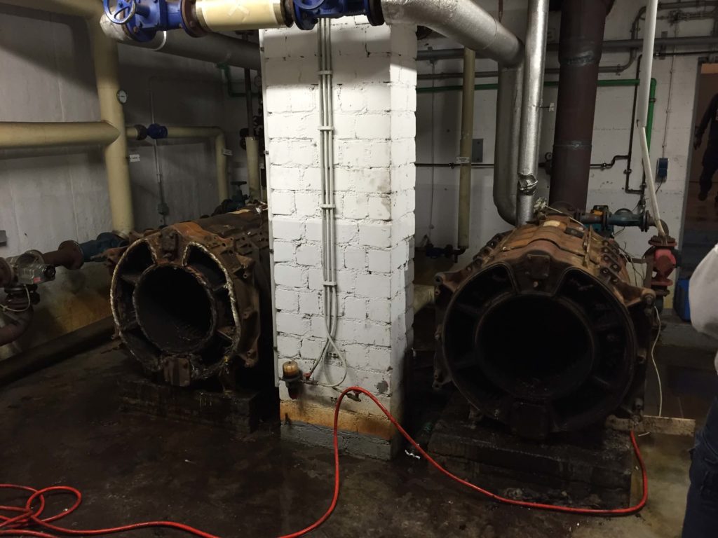 In einem Mehrfamielienhaus mit 56 Wohneinheiten sollte die alte 300 KW Ölheizungsanlage demontiert und durch eine neue Gasbrennwertanlage ersetzt werden. Die alte Guß Heizungsanlage musste durch abnippeln der einzelnen Gußglieder und Abtransport durch einen 1,5×1,5 Meter kleinen Lichtschacht ca. 6m ins freie transportiert werden. Die neue Gasleitung wurde in 54 er Kupfer Gas Press Fittinge neu verlegt. Beide Buderus GB 312-160 sind mit einer Systemtrennung an das bestehende Heizungsnetz angeschlossen worden. Die gesamte Austauschaktion dauerte 10 Arbeitstage und ist mit großer Planungs- und Terminsicherheit durchgeführt worden.